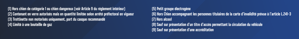 Cette liste n’est pas exhaustive et les agents de sécurité sur place sont seuls juges des objets autorisés à entrer ou non au sein des zones. Merci de votre compréhension.